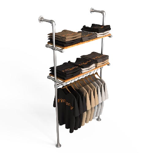 Nous vous proposons cette étagère simple avec penderie pour un agencement mixte de vos produits.