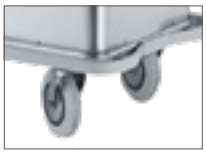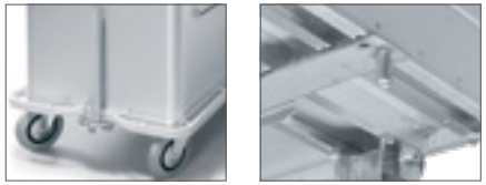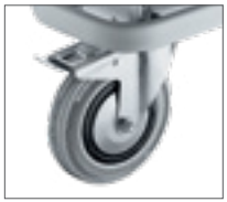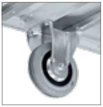 - Embase roulante : 2 roulettes directionnelles et 2 roulettes fixes disposées dans les coins, Ø 125 mm, souples, roues en
