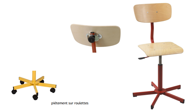 - Montant arrière en tube méplat chants ronds 30x15 mm ép.1,5mm permettant le réglage du dossier en hauteur à l’aide d’une molette.