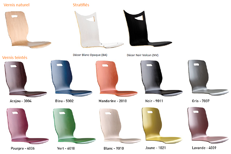 Choix de couleurs de piètement (à préciser lors de la commande)