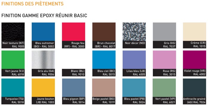 Finitions piètements : Couleurs RAL à préciser lors de la commande