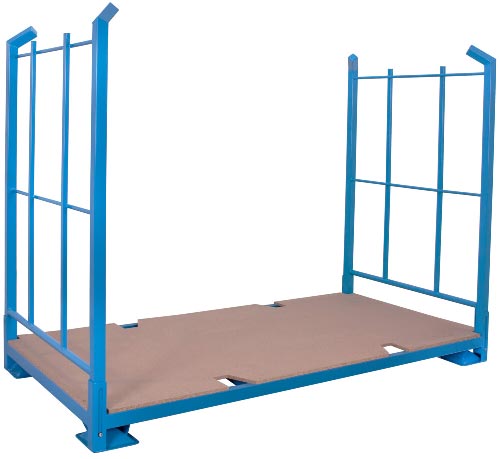 Cette palette matières lourdes est équipée de parois latérales rabattables et les extrémités de poteau sont inclinées vers l'intérieur.