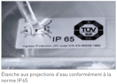 Elle est adaptée également pour une protection renforcée contre l’humidité, les projections d’eau et la poussière.