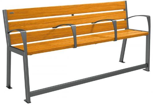 Ce banc urbain offre une aide appréciable grâce à sa rehausses de 10 cm, son repose-pieds et ses accoudoirs adaptés.