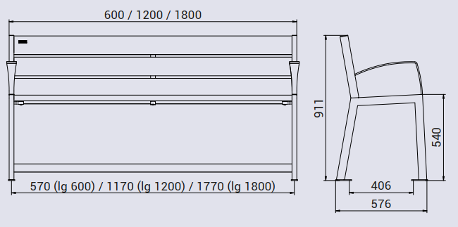 - Recommandations : un accoudoir pour un banc de 1200 mm et deux accoudoirs pour un banc de 1800 mm.
