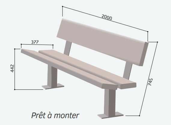 - Assise et dossier : en bois exotique épaisseur 36 mm, finition lasurée (chêne clair ou acajou).