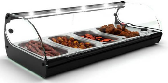 Cette vitrine chauffante permet d'exposer idéalement vos sauces, tapas ou buffets.