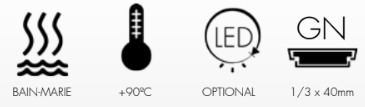 - Capacité de 4 bacs GN 1/3 x 40mm inclus