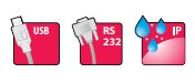 - Communication : Ports de communication facilement accessibles (2xUSB, RS232) plus 4e emplacement (Ethernet ou 2nd RS232), BPL et BPF, horloge en temps réel, transfert direct de données, enregistrer sur une clé USB