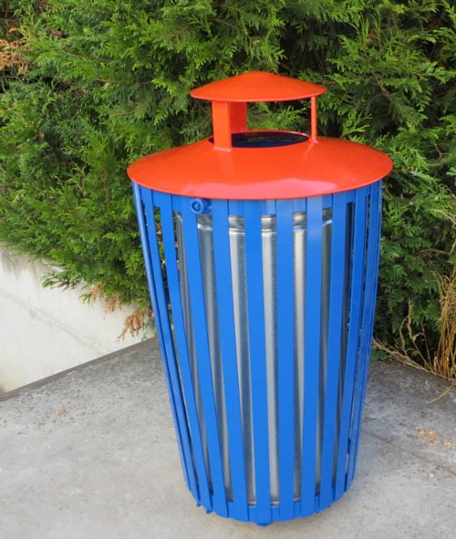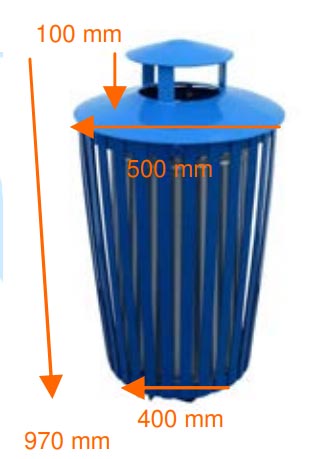 - Le chapeau d’une hauteur de passage de 100 mm vous apporte une sélection des déchets mis dans la corbeille tout en protégeant des intempéries