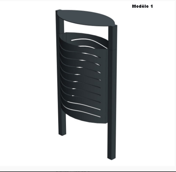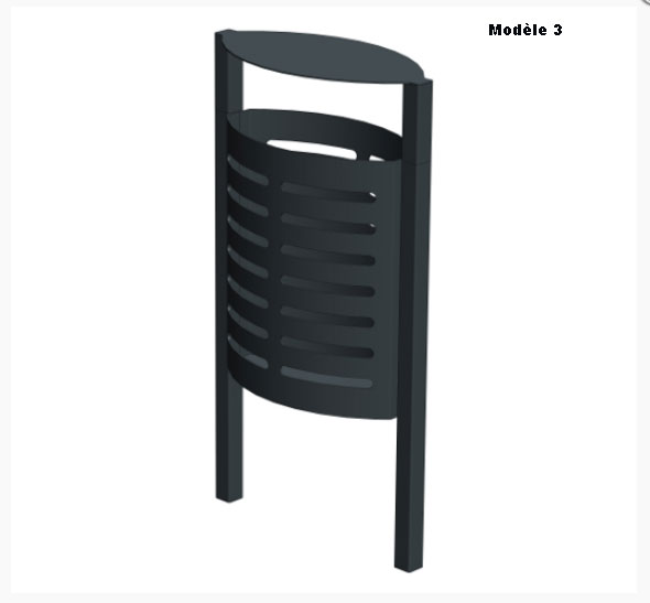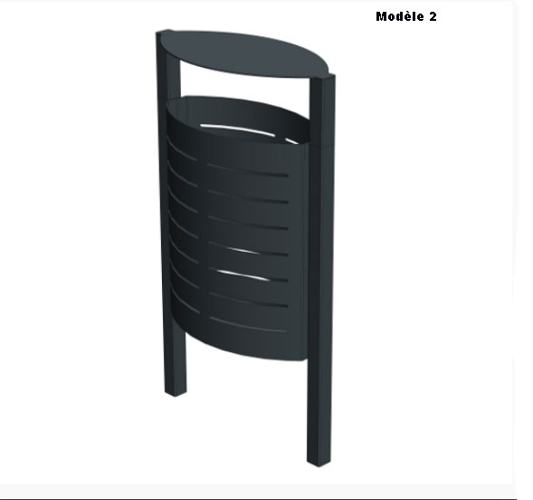 Cette corbeille de ville d'une capacité de 40 Litres est conçue en tôle d'acier roulé montée sur deux poteaux en tube d'acier Ø 40 x 40 mm.