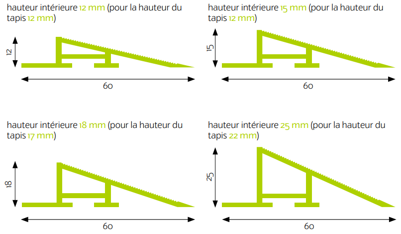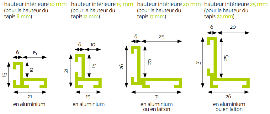 Pour les tapis destinés à être posés sur le sol, il est recommandé d‘installer d‘abord le profilé.