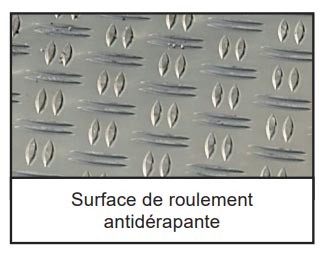 Fabriquée en aluminium, sa surface de roulement en tôle damier est antidérapante.