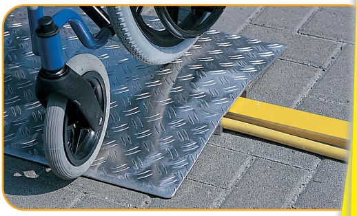 rampe de seuil PMR est conçue pour faciliter le passage de fauteuils roulant, de vitrines roulantes…