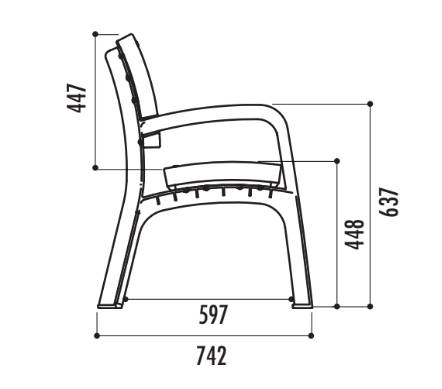 - Dossier , assise et piétement en Polyéthyléne 100% recyclable traité anti UV