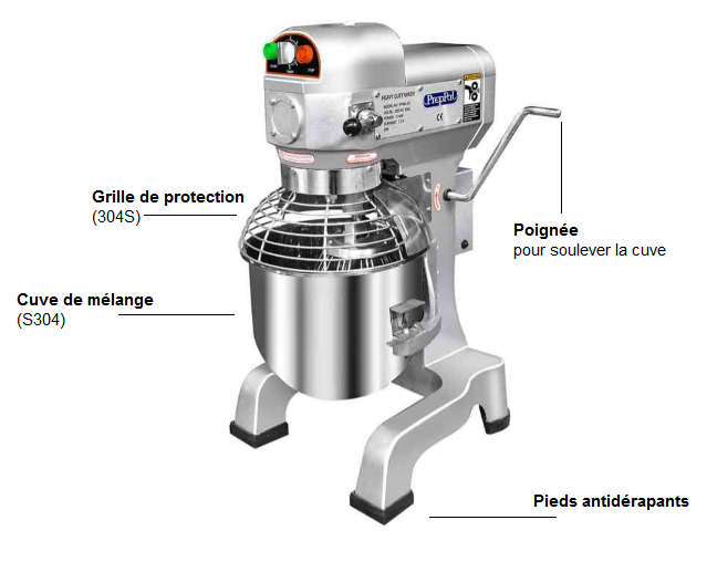Ce batteur mélangeur planétaire professionnel est conçu pour une utilisation intensive. Idéal pour la pâtisserie.