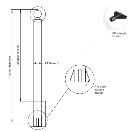 Ce potelet de trottoir est à sceller (ou à fixer sur platine en option)