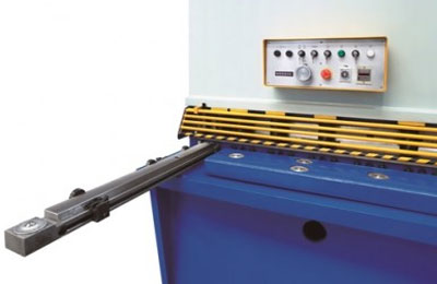 Cette cisaille hydraulique est équipée d'une butée arrière avec vis à billes; il s'agit de plus d'une butée éclipsable.
