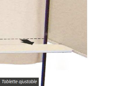 - Tablette : ajustable à hauteur adaptée située de face.