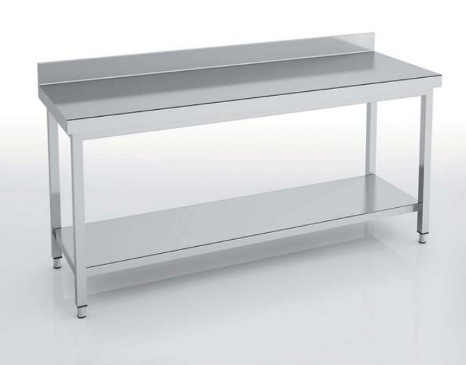 Idéale pour les cuisines professionnelles, robuste et spécialement étudiée pour vous offrir hygiène et confort. Voici notre table adossée avec étagère.