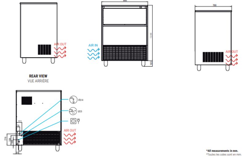 Il est livré avec une pelle à glaçons et 2 filtres mécaniques pour éviter l’encrassement du condenseur.