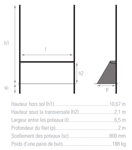 - Intérieur du but : 6,5 x 2,5 m