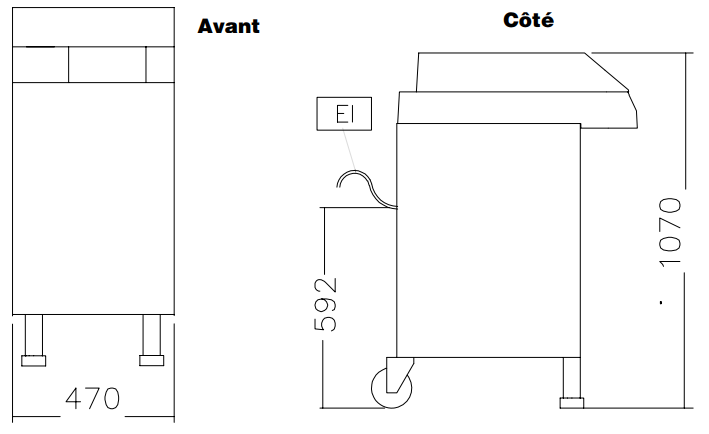 - Dimensions (L x P x H) : 470 x 710 x 1070 mm