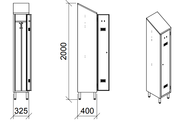 - Dimensions (L x P x H) : 325 x 400 x 2000 mm
