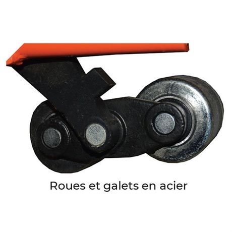 Ce lève palettes est également monté sur des roues et boggies en acier pour un déplacement aisé et plus de résistance.