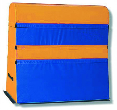 Ce cheval de saut en mousse est un équipement sportif utilisé pour les entraînements de gymnastique.