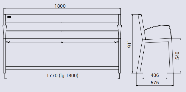 Ce banc urbain offre une aide appréciable grâce à sa rehausses de 10 cm, son repose-pieds et ses accoudoirs adaptés.