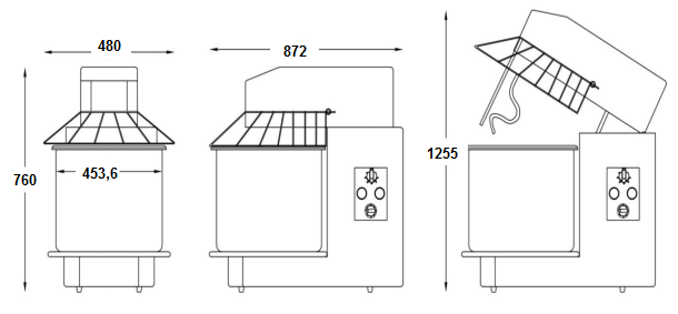 - Vitesses de rotation de la cuve (Tours/minute) : 90 / 135