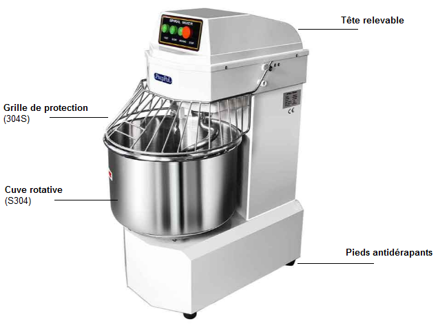 - Pétrin professionnel à tête relevable