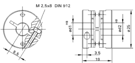 Transmission de rotation sans jeu, rigidité en torsion élevée, forces de redressement moyennes, amortissement des vibrations, isolant électrique.