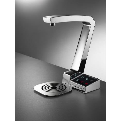 Ce distributeur d’eau chaude, froide et gazeuse est réalisé en acier inoxydable avec des touches tactiles.