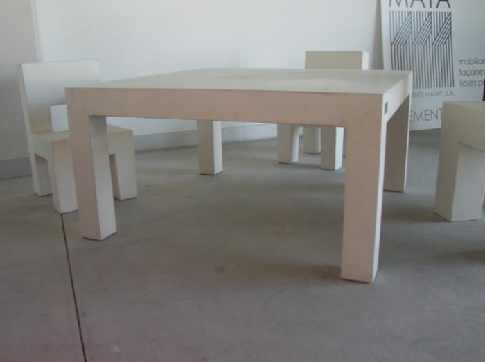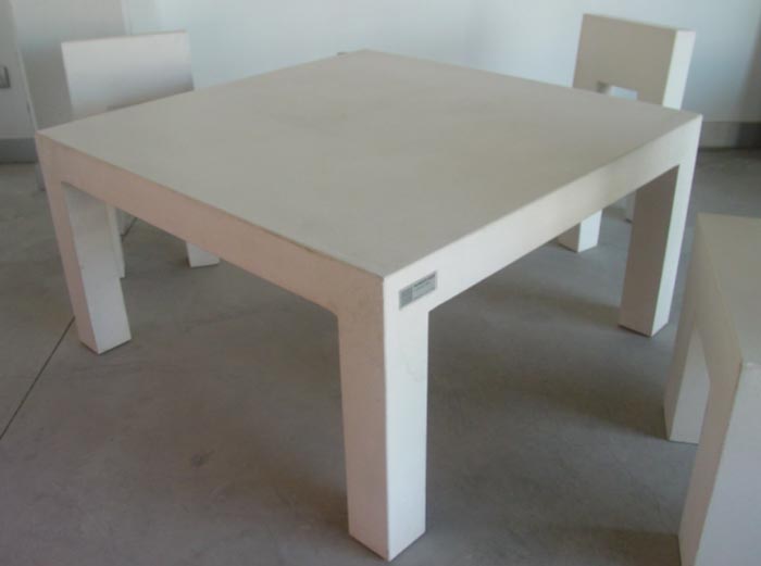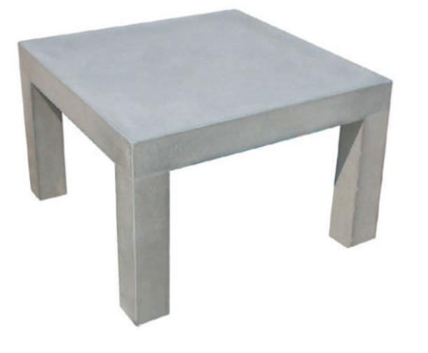 Cette table en béton est disponible en format carré ou rectangle avec différentes hauteurs possibles.