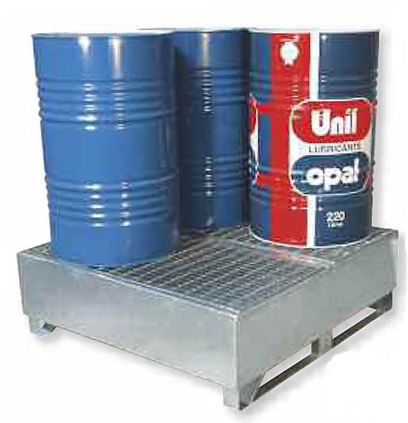 - Bacs de rétention avec skis pour 4 fûts - Permettent le stockage des bacs en rack à palette.