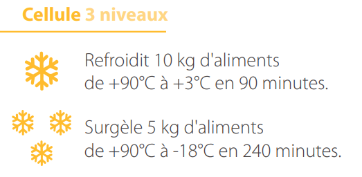 Cette cellule de refroidissement et surgélation rapide permet de refroidir et congeler de grandes quantités d'aliments en un minimum de temps.