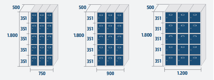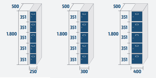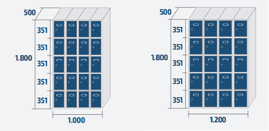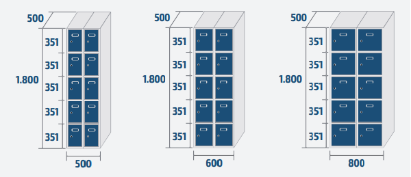 - Couleur standard: corps gris RAL 7035 et portes RAL 5010.
