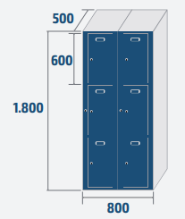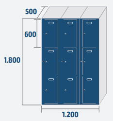 3, 6 ou 9 caisers Largeur : 400, 800 ou 1200 mm Hauteur : 1800 mm Profondeur : 500 mm Serrure standard