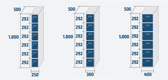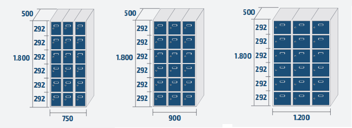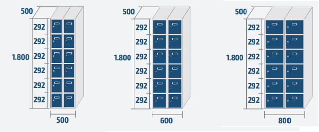 - Couleur standard: Corps gris RAL 7035 et portes RAL 5010.
