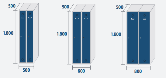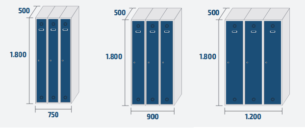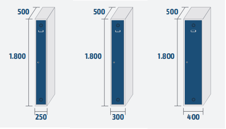 - Couleur standard: Corps gris RAL 7035 et portes RAL 5010.