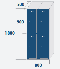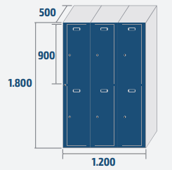 2, 4 ou 6 portes Largeur : 400, 800 ou 1200 mm Hauteur : 1800 mm Profondeur : 500 mm Serrure standard