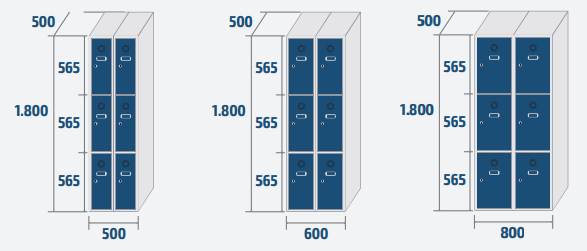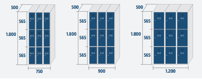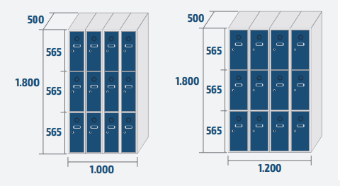- Couleur standard: corps gris RAL 7035 et portes RAL 5010.