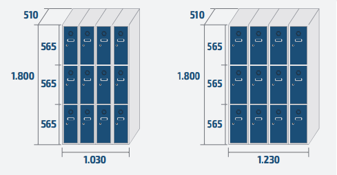 Vestiaire 12 casiers (4 colonnes) :