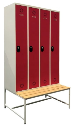 Vestiaire 4 portes avec 4 châssis + banc de 250 mm