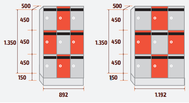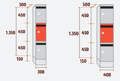 - Hauteur : 1500 mm / 600 mm / 1050 mm