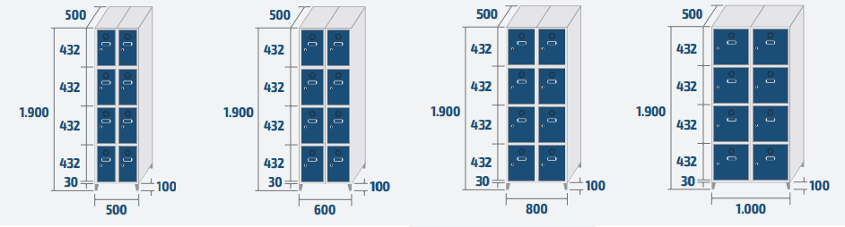 Réf. TC : 312324842Vestiaire monobloc 4 portes 8 500 x 500 x 1900 0,48 34,2