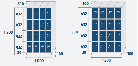 Réf. TC : 672671866Vestiaire monobloc 4 portes 12 1200 x 500 x 1900 1,14 63