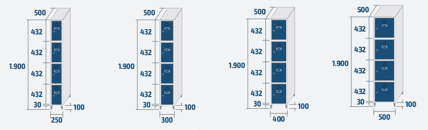Réf. TC : 711227723Vestiaire monobloc 4 portes 4 300 x 500 x 1900 0,29 21,5